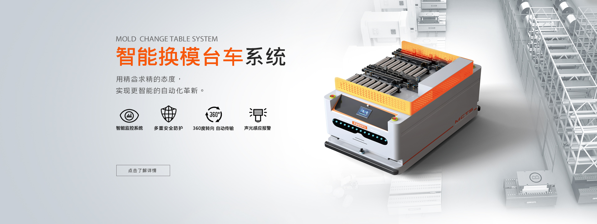 面對市場不斷出現(xiàn)的新挑戰(zhàn),格萊富助力企業(yè)發(fā)展,為工業(yè)生產(chǎn)提供模具裝夾、模具快換、模具搬運、模具倉儲等完善的換模自動化整體解決方案。使企業(yè)不但實現(xiàn)模具快速更換、智能轉(zhuǎn)運、精益生產(chǎn),還提高效率,優(yōu)化工藝,強(qiáng)化競爭優(yōu)勢...了解更多